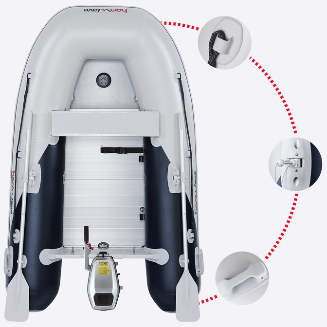 Honda deniz motoru, Honda Bot ile kullanılmayı hak ediyor. Taşınabilir ve hafif, Honwave şişme botları, gezinti, balık tutma veya sadece su üzerinde tur için çok iyi bir tercihtir. Honwave'nize Honda deniz motorunuzu takın ve her yere kolaylıkla gidin. Yenilikçi, geniş çaplı şişirilebilir tüpler üst sınıf flotasyon ve dengeye sahiptir. V şeklindeki gövde seçeneği ile en zorlu seyahatler sizi bekliyor.